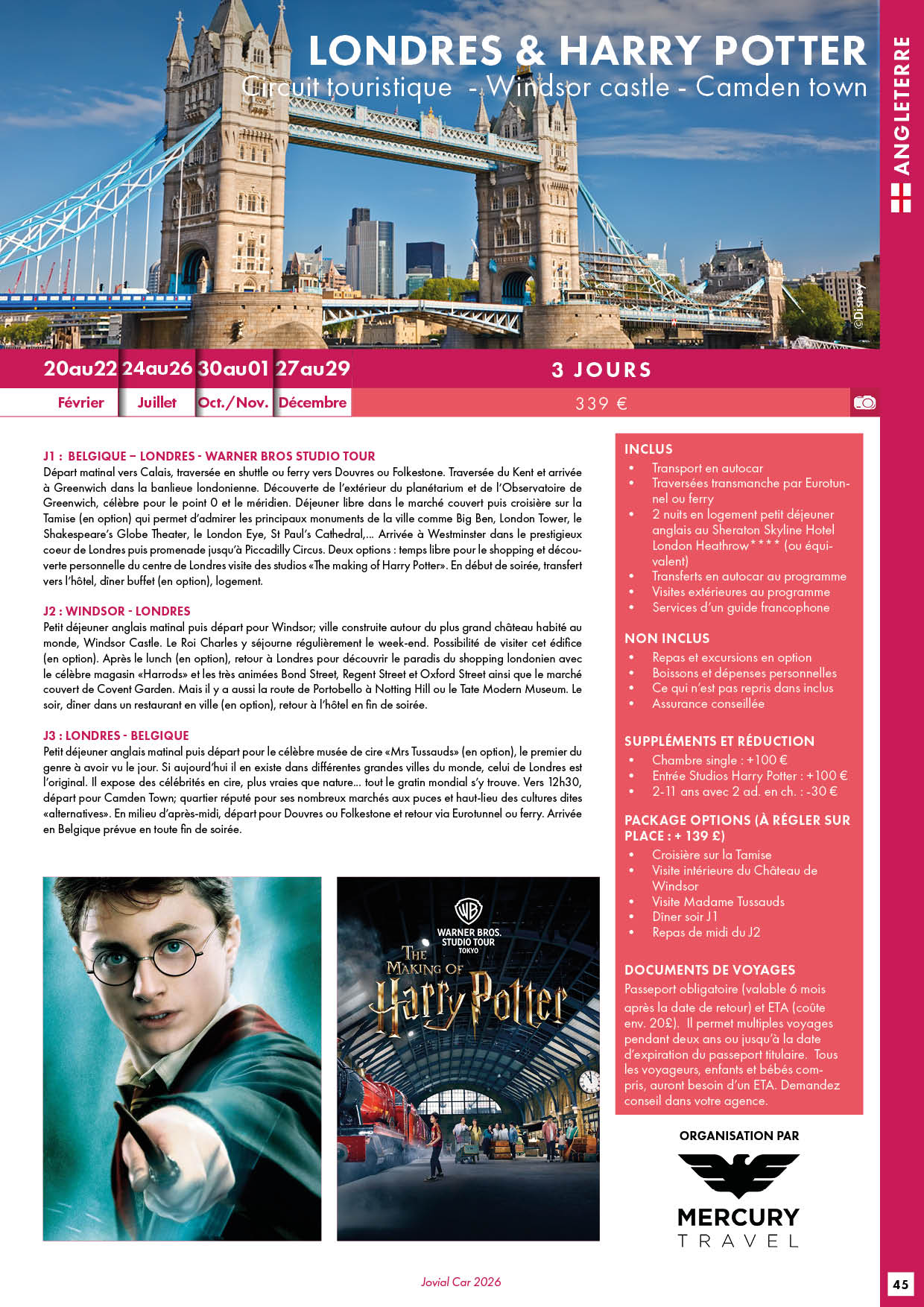 J1 : BELGIQUE – LONDRES - WARNER BROS STUDIO TOUR